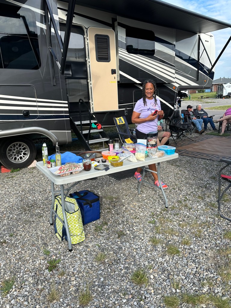 Sunday included laundry, cleaning the inch-thick road dust from the rig, grocery shopping, and spot cleaning the full coverage of unknown-named bugs from Jackson’s windshield, as well as picking up Timber from the kennel and doing some computer work. Tonight was caravan Pizza night. Mark and Scott were our Pizza oven Pros, while each of us were instant pizza chef celebrities.