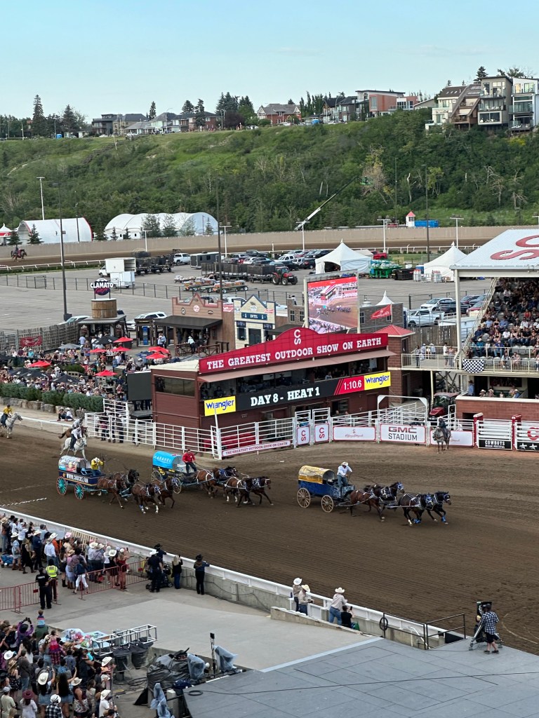 Lots of photos – We rode the C-train from the Somerset/Bridlewood station into Calgary to the Erlton/Stampede station (about 30 minutes from Black Diamond, with plenty of big truck parking). Easy to get train tickets, easy to follow the route to know when to exit/load. The Stampede was incredible. The last 3 photos were a drone show set to a live stage performance! Just a great event!