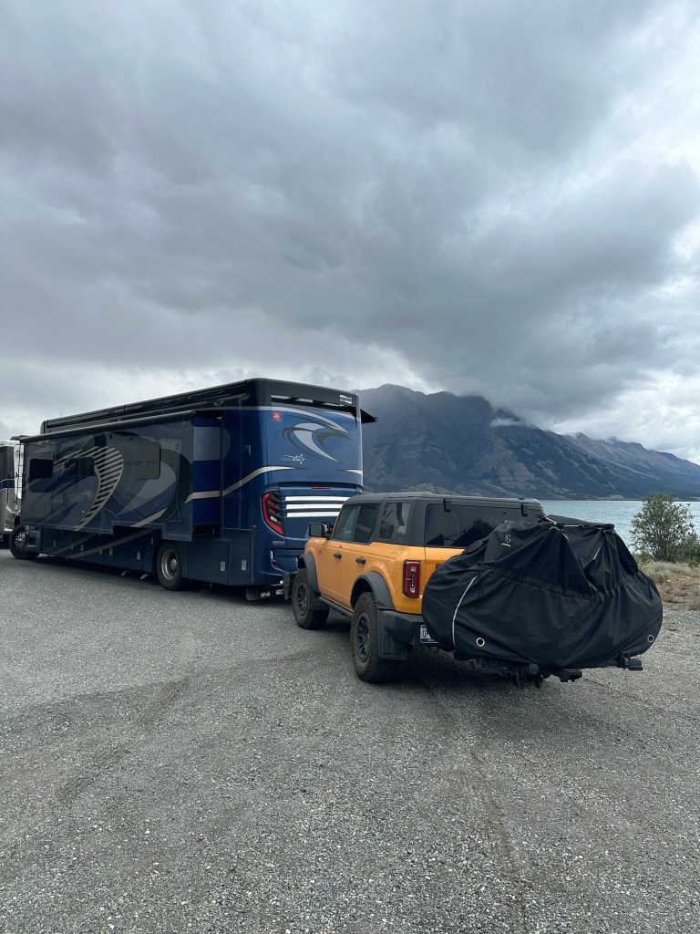 This campground had an RV wash. Yippee! So, before we even went to our campsite, Mark & I hand washed the 4000+ miles off Jackson! Cheeto also got a wash. The rig looks so much better!
