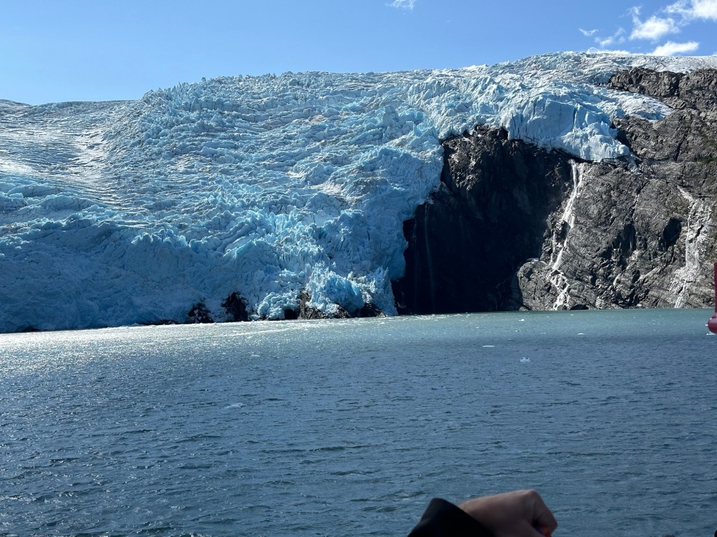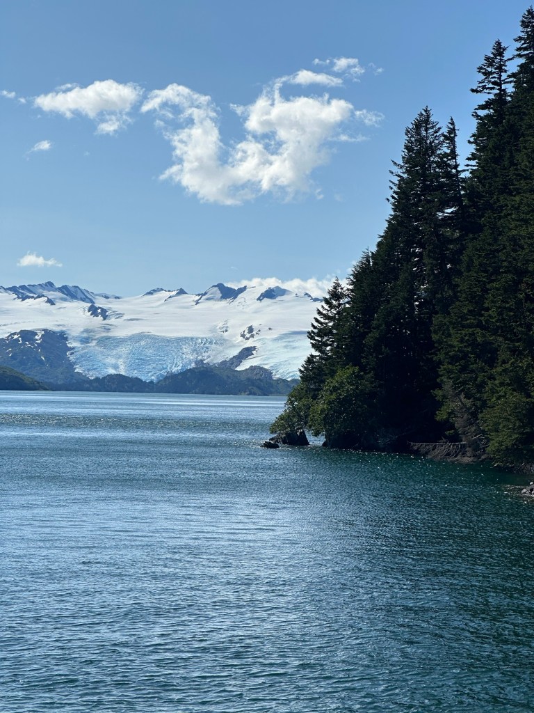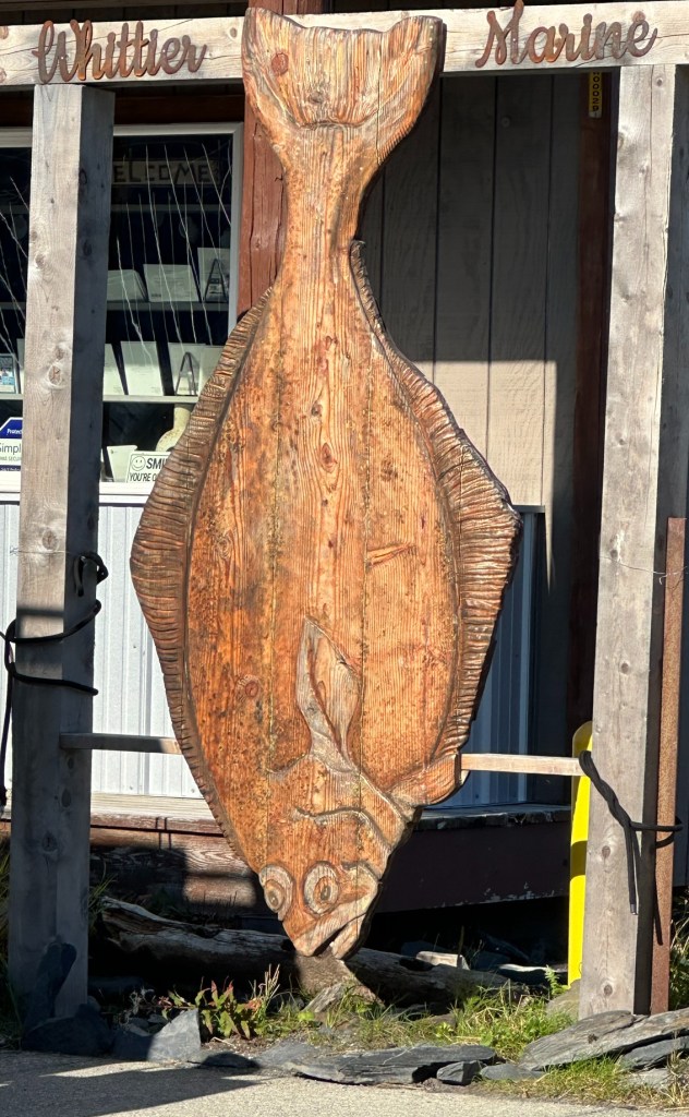 Our 13.5 hour outing to Whittier began with a scenic train ride on the Alaska Railroad, followed by a “glacier cruise” in Prince William Sound. Besides getting close enough to see a small section of the Beloit Glacier calving and hearing it popping and cracking as it splashed into Blackstone Bay, we had a Chugach Forest Ranger share incredible insights into many key glacier terms and explain the nuances of the more than seven glaciers we saw. Along the journey, we had great wildlife sightings, including Dall Sheep, sea otters, harbor seals, kittiwakes (birds much like sea gulls), Eagles; and on the way home at the end of long day, we spotted a pod of Beluga whales near Beluga point. We even had enough time between the train ride and boat cruise to walk the boardwalk of Whittier and take a few photos.