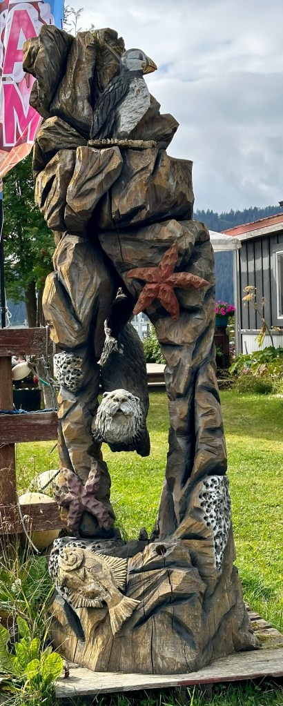 Our first attempt to take the ferry over to Seldovia was cancelled due to rough seas; but we were finally able to go on our last day in Homer. Besides visiting the quaint remote island town, this tour was very much a marine wildlife outing. We spotted a number of Bald Eagles, Kittiwicks, Kildare, Tuftin puffins, sea lions, sea otters, jelly fish, and a humpback whale tail!