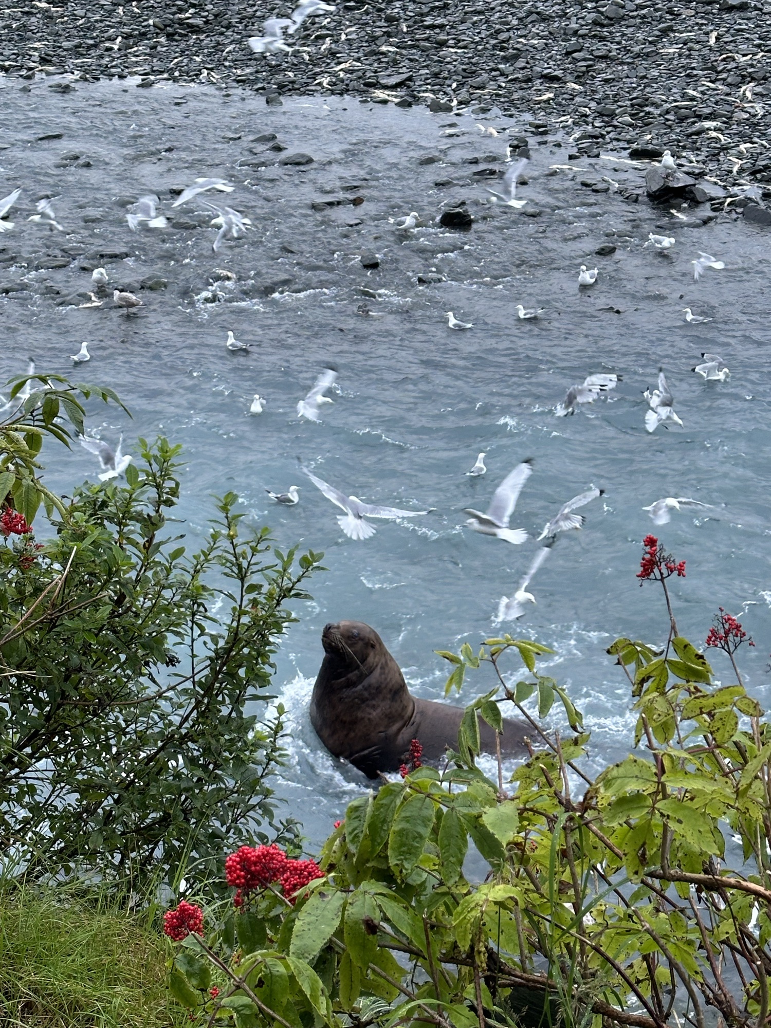 The Solomon Gulch Hatchery releases annually about 250 million pink salmon fry and 1.8 million coho salmon smolt in a process known as ‘ocean ranching.’ The Hatchery is open to the public in summer with self-guided tours. We went to watch the massive sea lions eating the salmon. We were even able to spot a few black bears and listen to the loud squawking of the sea gulls angry at the sea lions for getting some of their catch!