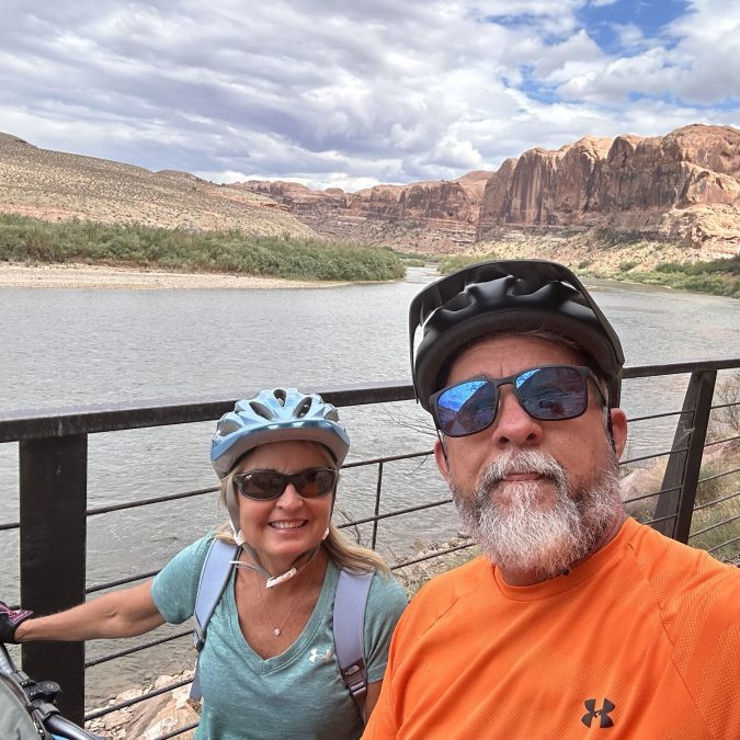 Mark agreed to go on a bike ride along the Colorado River and then loop back into town if the end of the ride could include a stop at one of the local breweries. We worked the morning to allow for cooler late afternoon temperatures and then took off on our mini adventure. We could ride right from the campground to connect to the aptly named Colorado Riverway Trail, which begins at the junction of US Hwy 191 and Utah Scenic Byway 128. We took an out and back route, then continued past Lions Park onto Moab Canyon Pathway into town. On the return, Mark was rewarded with a cold brew from Proper Brewing Co. After a refreshing pint and talking to several locals, Mark rode back to the campground and I continued my ride on the Old Spanish National Historic Trail another few miles to the entrance to Arches before turning back.