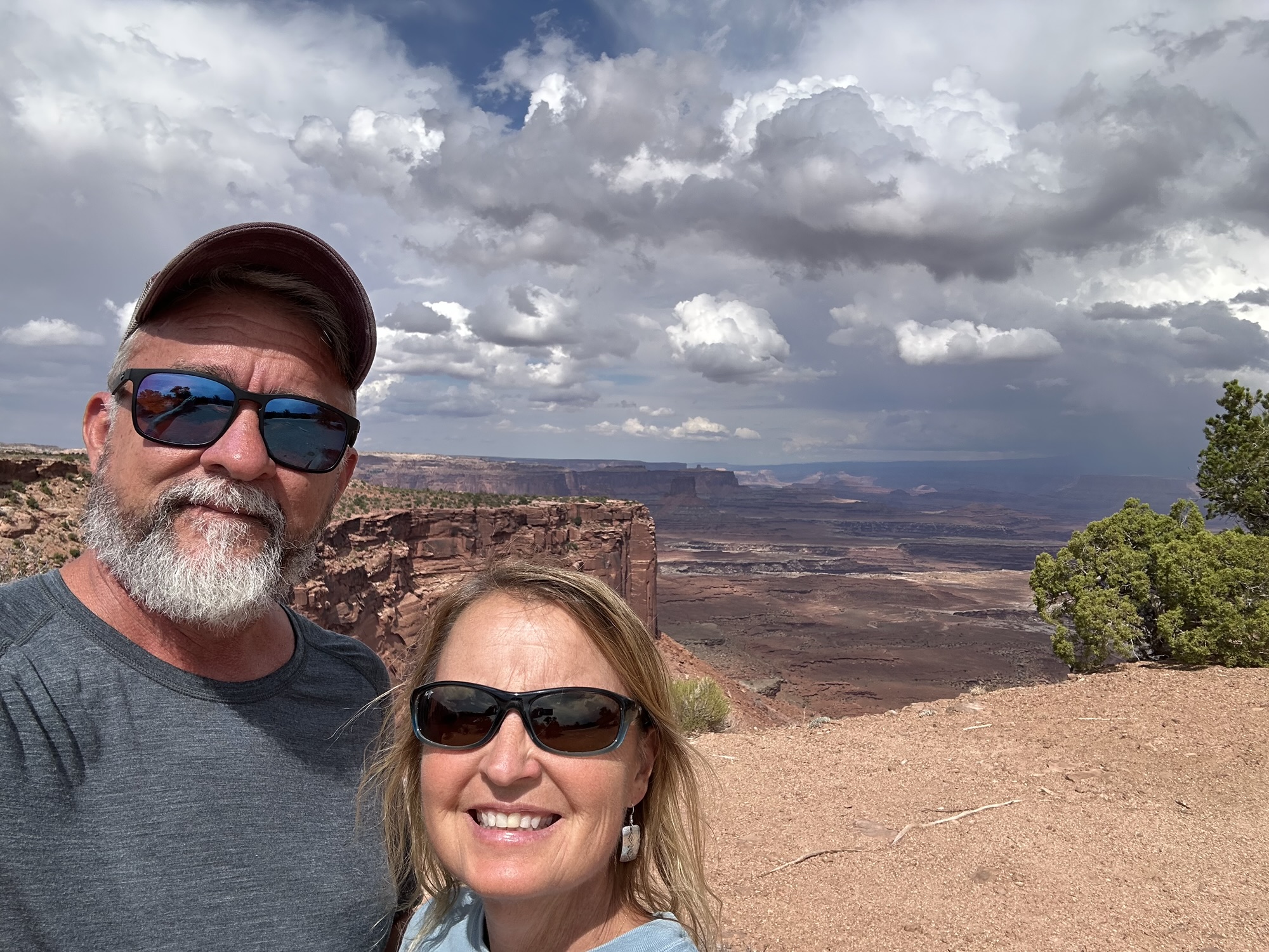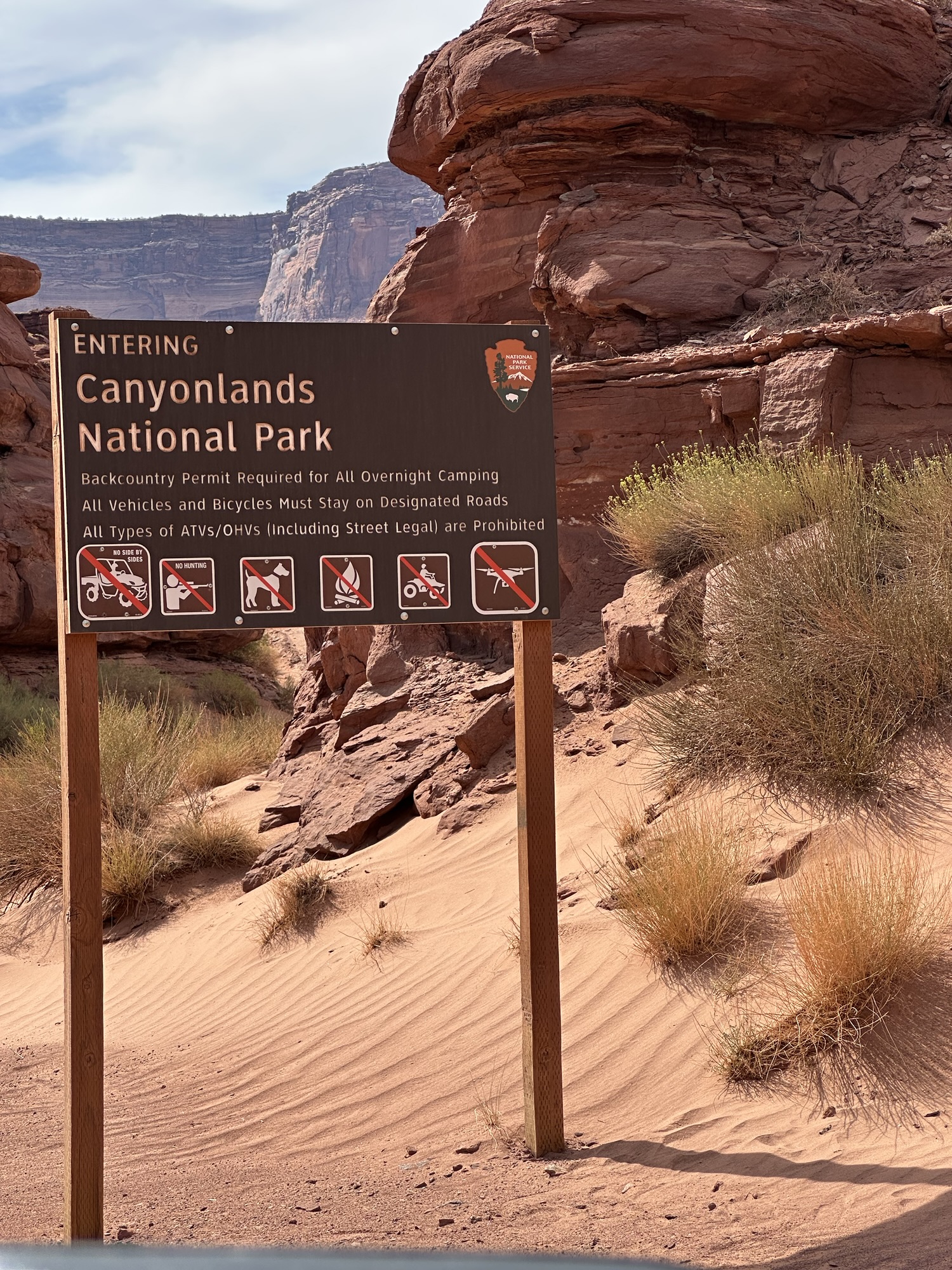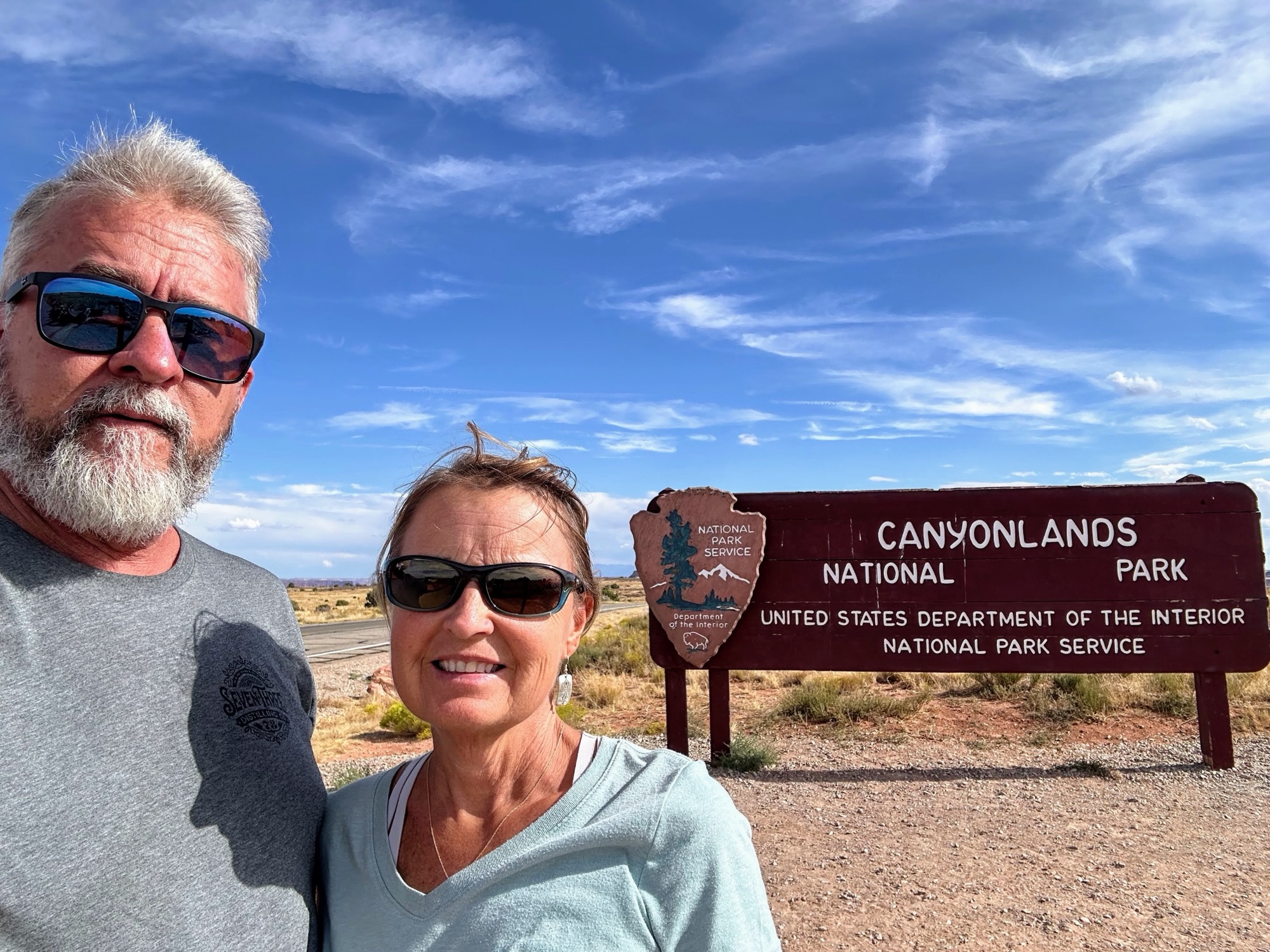 This park is huge! Even though all three districts adjoin each other, each area must be reached from different entry points with travel time between the districts of over 3 hours. So, we didn’t realize that and decided to only further explore the closest district to Moab, Island in the Sky. We prefer to not leave Timber more than five hours in the rig by himself, so this was the closest doable district. We’ll have to return to explore The Needles and The Maze districts another time. The Park Ranger suggested you need four to five days to adequately explore the three districts of this park. In 1964, to protect the Green and Colorado Rivers from becoming part of a big dam project, Secretary of the Interior, Stewart Udall influenced legislation that President Lyndon B. Johnson passed designating the area as a National Park. From the 2025 Moab Guest Guide, I learned Canyonlands is open year-round, 24 hours a day and that The Needles district is about a 90-minute drive south of Moab, while The Maze is a three-hour drive west from Moab! Most visitors only see Island in the Sky since it is closest and has 20 miles of paved roads to easily traverse to see the deep, red-walled canyons, arches, buttes, spires and other innumerable spectacular rock formations. The other two districts, with the most land mass, only have eight miles of paved roads between them and requires 4WD vehicles to explore!