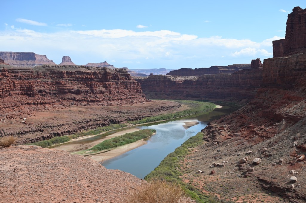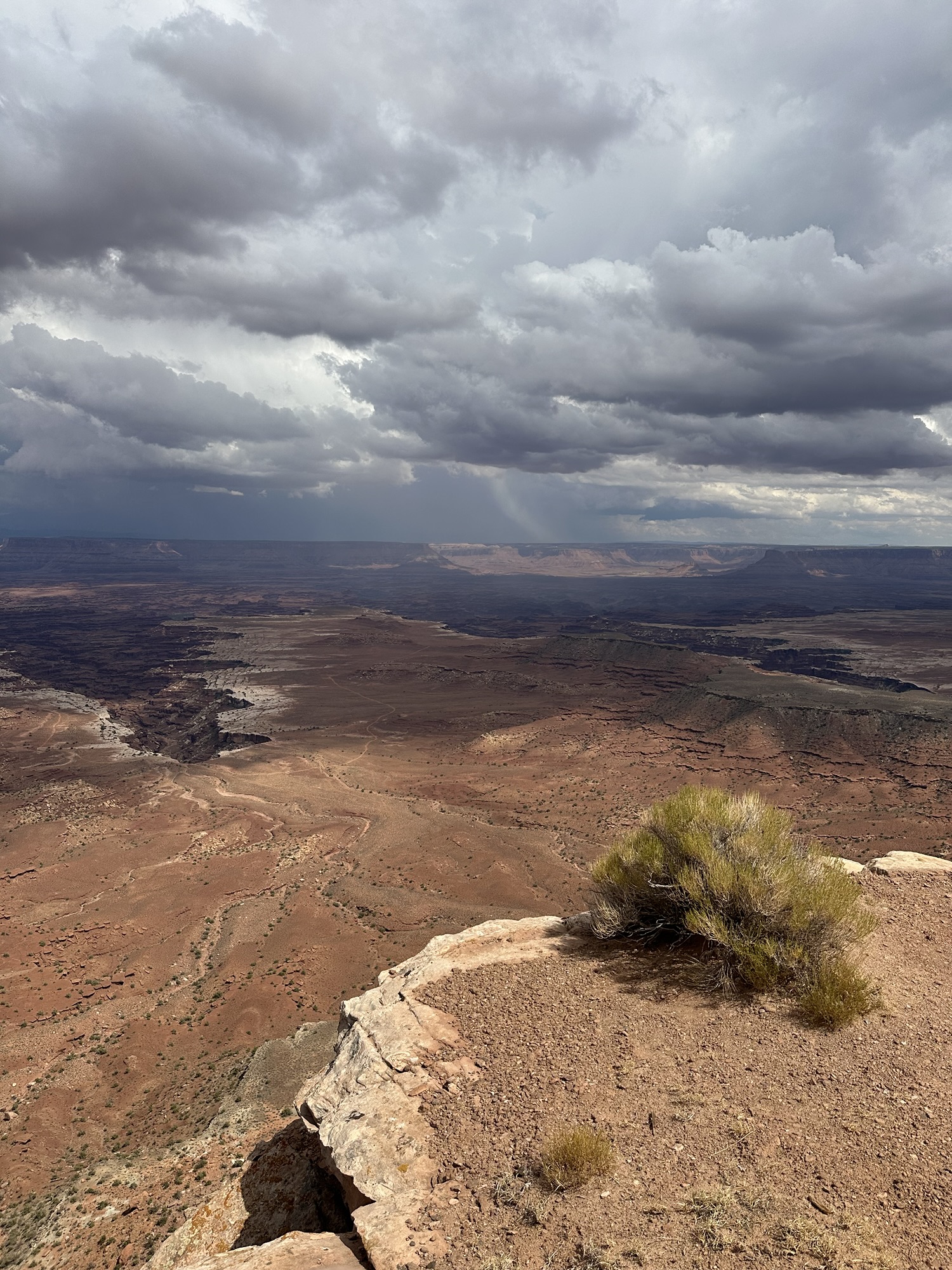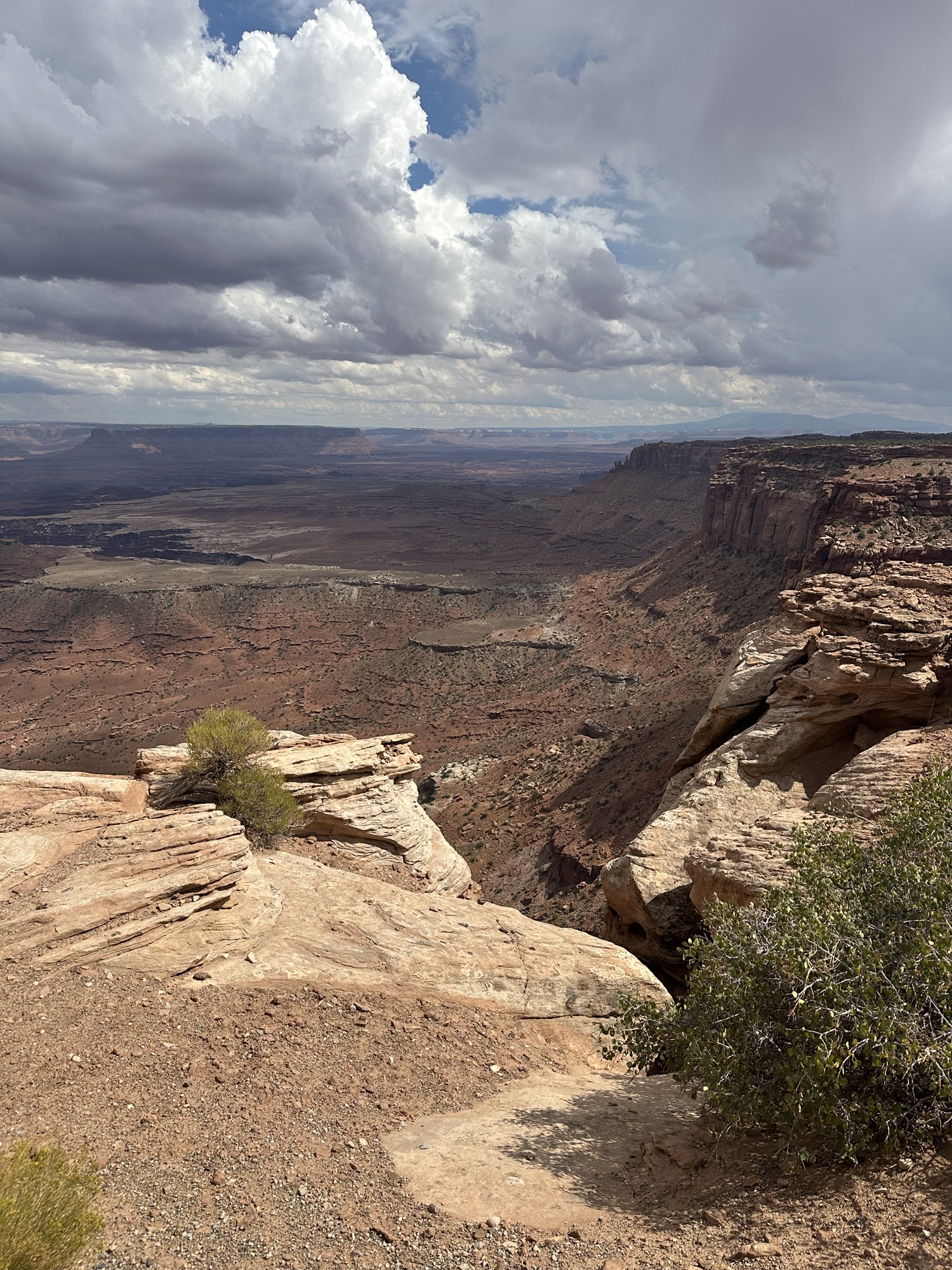 This park is huge! Even though all three districts adjoin each other, each area must be reached from different entry points with travel time between the districts of over 3 hours. So, we didn’t realize that and decided to only further explore the closest district to Moab, Island in the Sky. We prefer to not leave Timber more than five hours in the rig by himself, so this was the closest doable district. We’ll have to return to explore The Needles and The Maze districts another time. The Park Ranger suggested you need four to five days to adequately explore the three districts of this park. In 1964, to protect the Green and Colorado Rivers from becoming part of a big dam project, Secretary of the Interior, Stewart Udall influenced legislation that President Lyndon B. Johnson passed designating the area as a National Park. From the 2025 Moab Guest Guide, I learned Canyonlands is open year-round, 24 hours a day and that The Needles district is about a 90-minute drive south of Moab, while The Maze is a three-hour drive west from Moab! Most visitors only see Island in the Sky since it is closest and has 20 miles of paved roads to easily traverse to see the deep, red-walled canyons, arches, buttes, spires and other innumerable spectacular rock formations. The other two districts, with the most land mass, only have eight miles of paved roads between them and requires 4WD vehicles to explore!