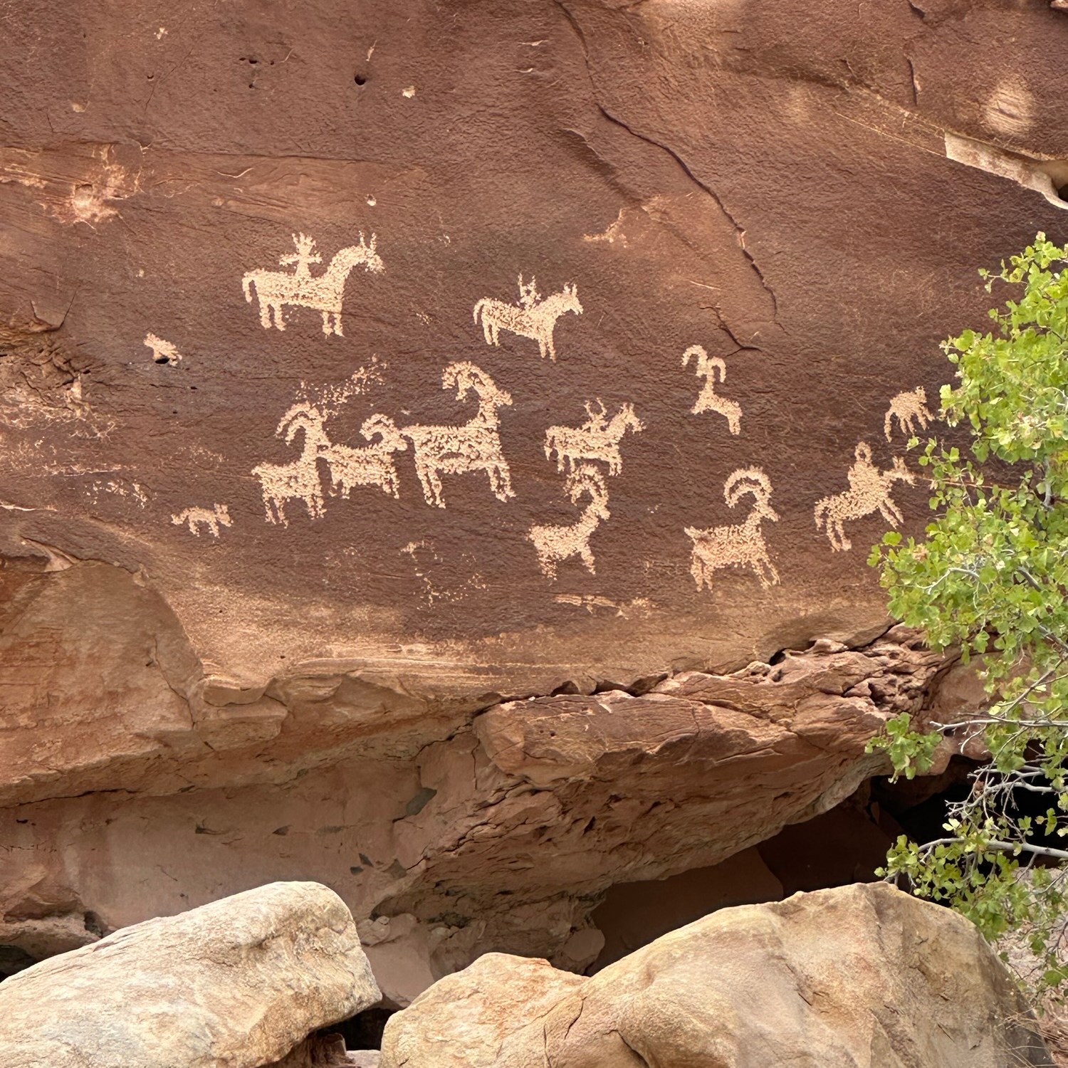I was surprised at how crowded the park was with foreign tourists. I was able to time our visit this week where we didn’t have to adhere to the Park’s timed entry reservation system. On several occasions, we had to search for parking spots at some viewpoints and totally bypassed a few other scenic lookouts. The 1.5 mile “hike” to Delicate Arch is truly that, with sections where you must climb rocks, pass along steep narrow paths and follow signs that keep you guessing which way the trail actually winds. But the view is breathtaking (especially if height has your stomach doing flip flops!). Near the trail head of Delicate Arch is an example of petroglyphs, along with the historic Wolfe Ranch.