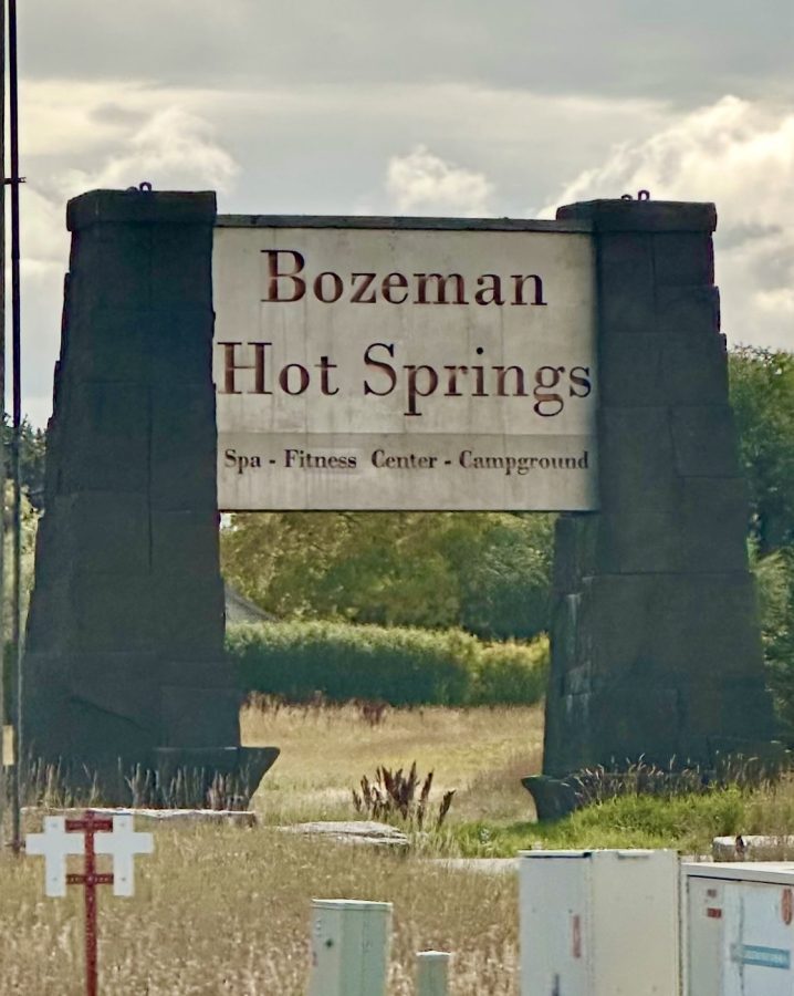 We arrived at Bozeman Hot Springs Campground. The campground is neat and clean, sites are mostly gravel, though a few are paved, the staff are friendly and attentive, with the usual amenities of cabins, laundry, lodge room, playground, game room, and even a “mining” experience for kiddos. The two BIG standouts for us were the huge dog park for Timber and the free access to Bozeman Hot Springs.