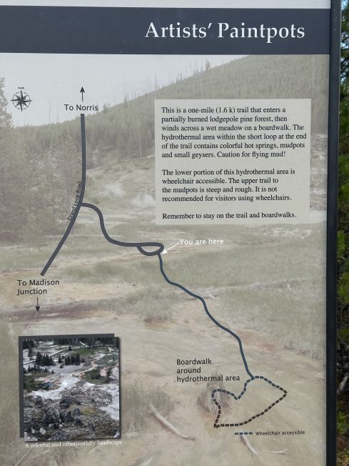 Once Timber greeted his Uncle Mike and Aunt Liz, we turned North with stops at Gibbon Falls and the Artists’ Paintpots before reaching the Norris Geyser Basin and Norris Museum.