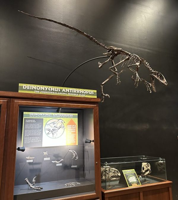 According to the exhibit in the museum, scientists outline two primary classifications of dinosaurs: non-avian and avian. The non-avian dinosaurs went extinct at the end of the Cretaceous Period; but within the avian classification, this group of dinosaurs continue to diversify and evolve. Today there are over 10,000 species of dinosaurs alive on earth – known as birds.